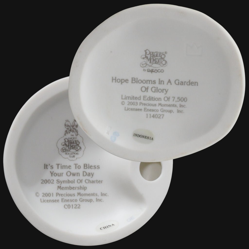 Lot of 2: Precious Moments, Bless Your Own Day, Hope Blooms in a Garden of Glory