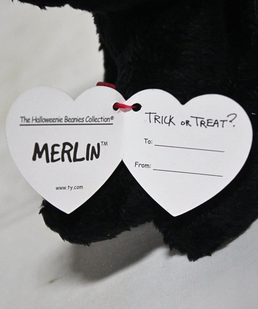 Merlin the Cat is a classic Halloweenies plush toy, perfect for collectors and fans of vintage stuffed animals. Whether you're expanding your TY collection or shopping for a nostalgic gift, Merlin is a timeless favorite from Ty Inc. This adorable plush makes a charming birthday present, stocking stuffer, Easter basket filler, or party favor — a thoughtful gift for any occasion.