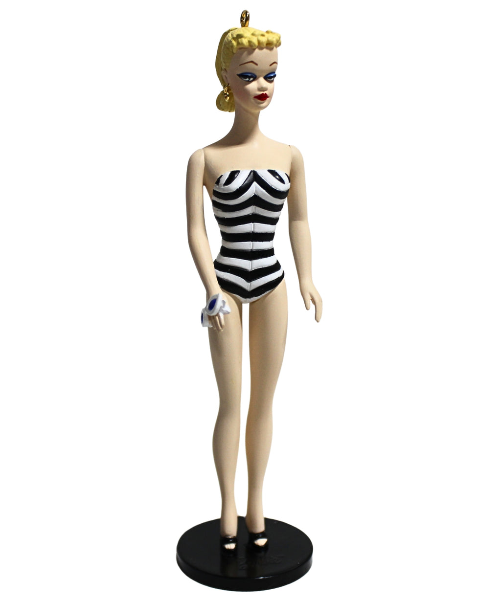 This nostalgic ornament, the first in the Barbie series, was sculpted to reflect one of the iconic stylings of the 1959 Debut Barbie doll.