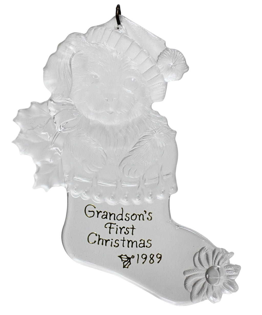 A lovely acrylic ornament, dated 1989, to adorn your tree and commemorate your grandchild's first Christmas.