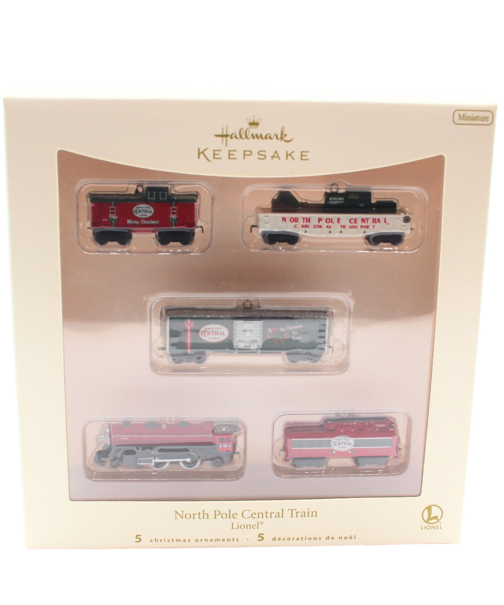 This magnificent set of miniature Lionel trains will transport your Christmas spirit all around your tree! This set includes a locomotive, tender, box car and caboose all fitted with beautiful holiday decor. Watch the train magically wind its way around your tree - delightful for both children and adults!