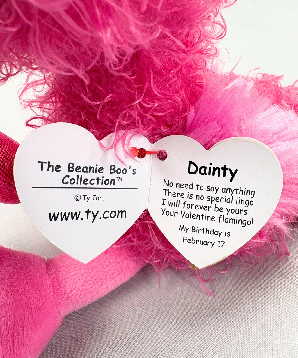 Dainty the Flamingo is a classic Beanie Boos plush toy, perfect for collectors and fans of vintage stuffed animals. Whether you're expanding your TY collection or shopping for a nostalgic gift, Dainty is a timeless favorite from Ty Inc. This adorable plush makes a charming birthday present, stocking stuffer, Easter basket filler, or party favor — a thoughtful gift for any occasion.